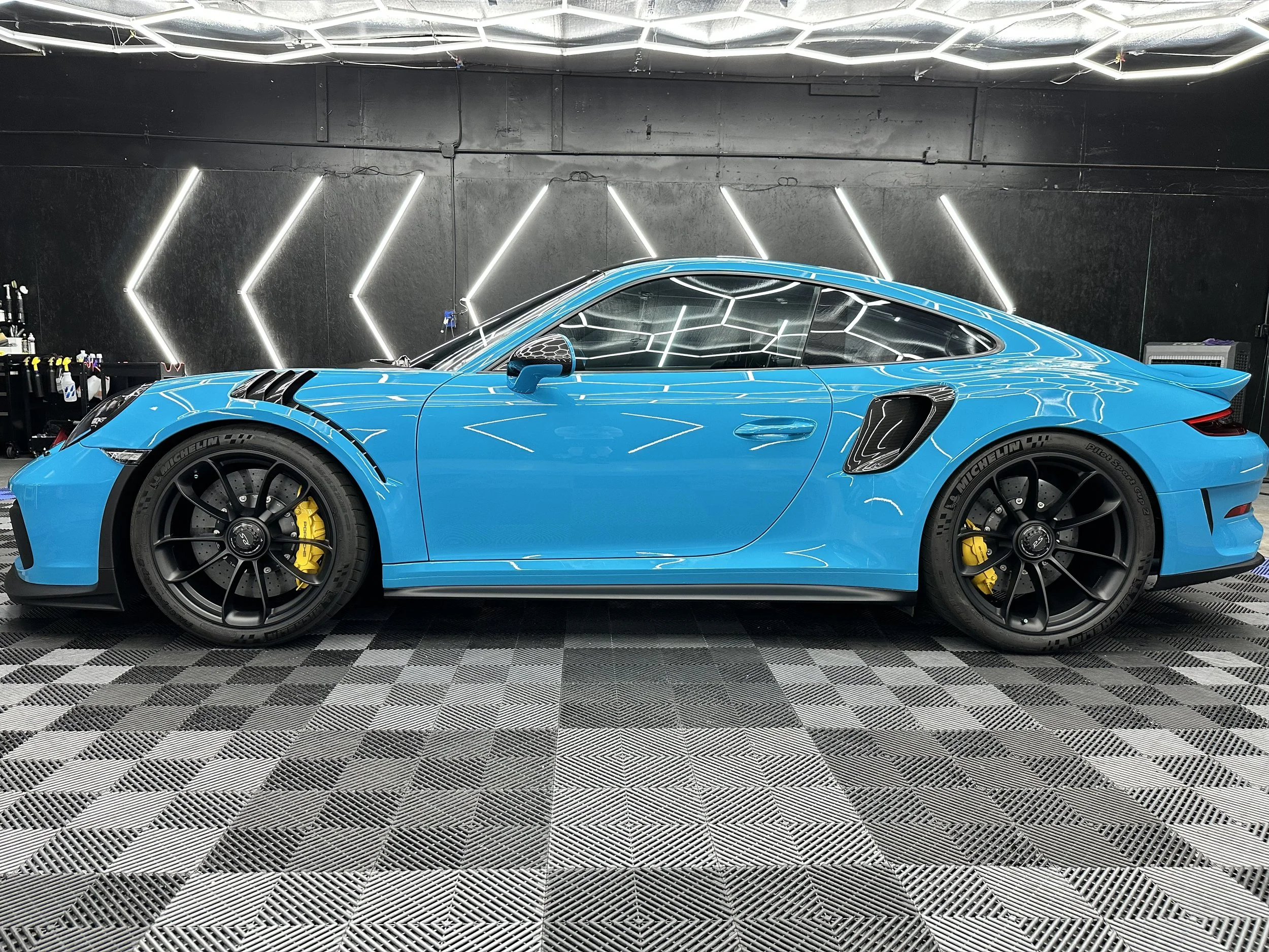 5. **Water-Repelling Properties**: Ceramic coatings are hydrophobic, meaning they repel water. Water will bead on the surface and slide off more easily, which not only keeps the car drier but also helps prevent water spots and etching from minerals.
